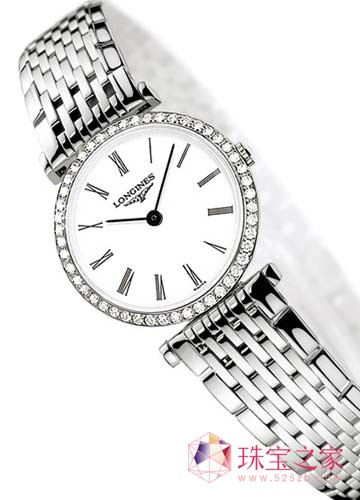 浪琴表嘉岚系列女装腕表以超薄流线型的设计,充分演绎浪琴表优雅含蓄的气派,配以6颗宝石轴眼的L209石英机芯。表框镶有48颗上品韦塞尔顿VVS优质美钻,令表身显得格外闪亮动人。表盘直径24mm,纯白表面备有时及分显示,精钢链带配以三重摺叠表扣,刚柔兼备,防水功能达30米(100尺)。