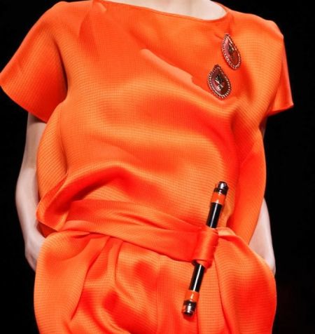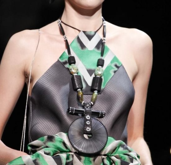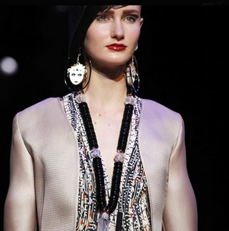 谁说造型夸张就不能优雅,Giorgio Armani就在大体积的珠宝中融入了精巧的设计,浓郁饱满的色彩,颇具风情的造型搭配。