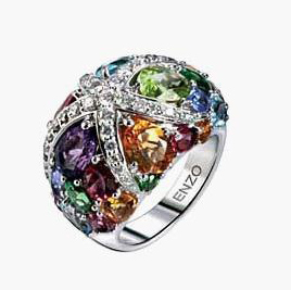 ENZO最知名的珠宝莫过于彩色珠宝了,它以彩色珠宝塑造出的各种形象都成为品牌的经典之作,本季它又适时推出了全新海洋系列珠宝,以海豹、海星和热带水母等海洋生物为设计蓝图,用白色18K黄金铸造出栩栩如生的海洋生物形态,再用精致手工镶以钻石,这些熠熠生辉的钻石,如同海面上折射着阳光的点点浪花,闪烁耀眼光芒。惟妙惟肖的海洋生物造型,四周再镶上绚丽多彩的优质天然彩色宝石,就如海底那些色彩斑斓的珊瑚礁,将一个绮丽绚烂而又充满神秘活力的海底世界展现出来,让喜爱新颖珠宝设计的都市时尚女性,感受到如花般绚丽的海洋色彩。