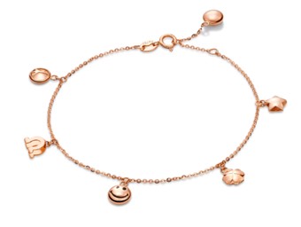 CHJ潮宏基法国Smiley笑脸系列K金手链,汇集象征快乐、幸运、勇气、和平,一切积极正能量的设计元素,让腕间的闪耀折射出佩戴者内心的向往美好生活的愿望!