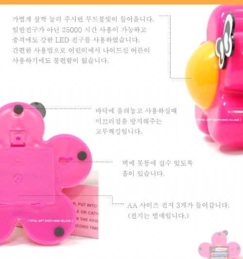 此款梅花灯是意大利有名的灯具设计师设计的专利产品,在韩国销量极高。可爱的设计,鲜艳的颜色,这不仅可以照明,,它还是一个非常棒的家用装饰品.轻轻的用手一按就亮,等十分钟后就自己会关掉.它不用电源,里面放4节电池就可以用了,所以小孩子和老人用也很安全.在情人节这天,送给她,让她每晚都能感受到“幸福的象花儿”一样......床头只挂一个梅花灯会显得太单调,要多挂几个才好看哦~