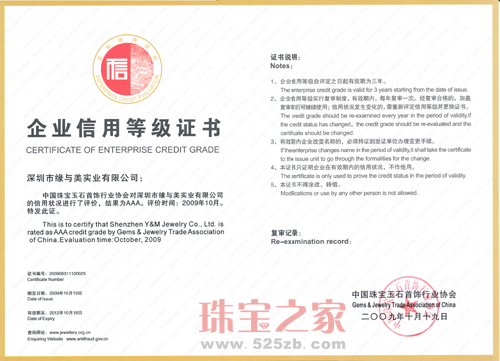 缘与美此次获评AAA级信用企业,是对其在履行经济契约及社会责任等方面的充分肯定。缘与美公司始创于1997年,成立以来十分注重商业信誉,与合作很行保持良好的合作关系,历次被评为AAA级信用商户。公司在创造经济效益的同时主动承担社会责任,解决了近千人的就业问题,致力于研发及推广环保珠宝加工生产线,向贫困地区、贫困学生及受灾地区踊跃捐款等,获得了良好的社会信誉。