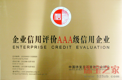 珠宝首饰行业信用等级评价由中国珠宝玉石首饰行业协会在商务部、国资委的指导下实施,是对企业在履行经济契约及社会责任等方面进行全面综合的考察和评估,属于国家级的综合性评价,自2008年正式启动。评价分为初审、公示、复审、备案等程序,评价结果在政府相关部门进行备案,通过评价的申报企业也将获得由商务部、国务院国资委统一规格、样式、编号的信用等级证书和标牌。