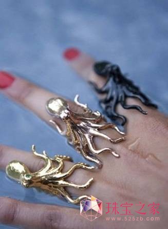 这个手上的小家伙一定是来自于海洋最深处,看上去是多么光滑又有别致。这个戒指的材质绝对是纯正的银,已经通过氧化处理,所以不用担心生锈的情况发生。章鱼眼睛的宝石是蓝色的,当然你可以选择自己喜欢的颜色来突出它的眼睛。