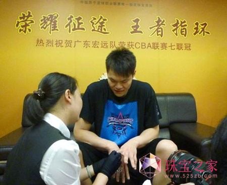 2011年5月6日,借助广东东莞银行队七连冠庆功的大好时机,金叶珠宝登门为宏远队全体队员裁量指环尺寸,从此拉开金叶珠宝和CBA明星的友谊序幕。此次联姻中国第一体育赛事 CBA联赛是金叶珠宝品牌形象华丽转身的浓墨一笔。中国CBA联赛近年的发展影响愈加扩大,金叶珠宝从最初名不经传的家庭作坊发展到现在拥有规模生产实力的大中型黄金企业,两者的发展走势契合自是不言而喻。CBA选择金叶珠宝看中的是金叶在大众消费群体间的口碑与其在黄金珠宝行业内的不争实力,金叶以CBA联赛作为继续发力的品牌背书也在于其广泛强势的大众影响力,相信两者的联姻定能再次缔造体育珠宝界的佳话。