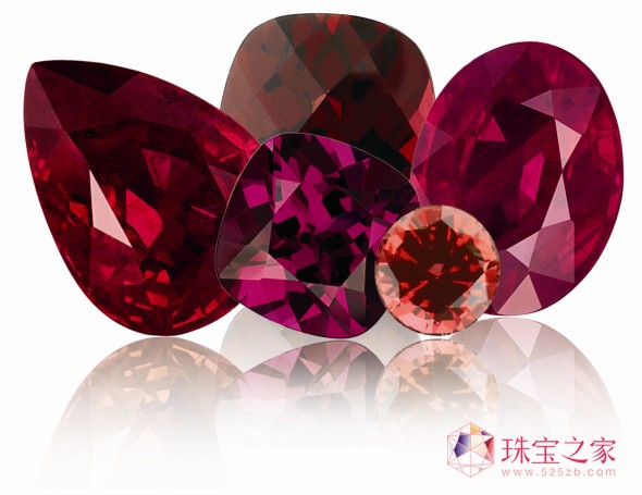 呈红色的宝石种类通常有:红宝石,贵榴石,红榴石,红碧玺,锰铝榴石,红色蓝宝石,珊瑚,红色尖晶石,红绿柱石,墨西哥火欧泊等等。