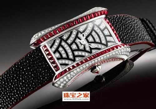 1938年的红宝石与钻石两用胸针炼坠,看得出当时受印度风格影响颇大/12,100,000元。